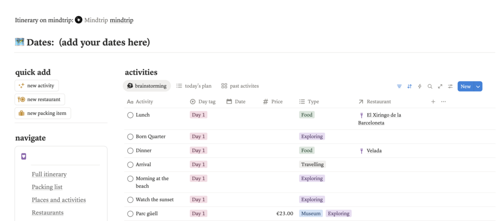 - Vegan Restaurant Guide: Access a pre-filled dataset of vegan restaurants, complete with all the info you need to enjoy Barcelona's best plant-based cuisine.