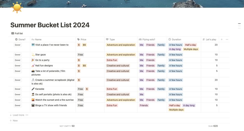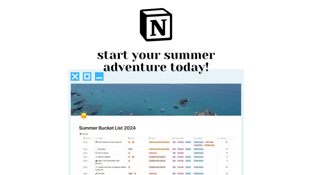 - Download: Get your copy of the Summer Bucket List and import it into your Notion space.