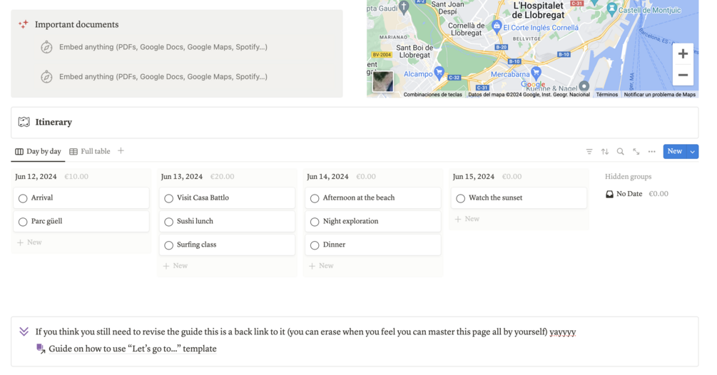 - Start Planning: Begin by filling out the databases with your chosen activities, restaurants, and accommodations.